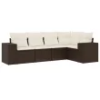 vidaXL Vrtna sedežna garnitura 5-delna z blazinami rjav poli ratan