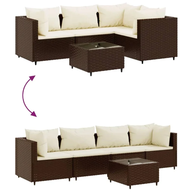 vidaXL Vrtna sedežna garnitura 5-delna z blazinami rjav poli ratan