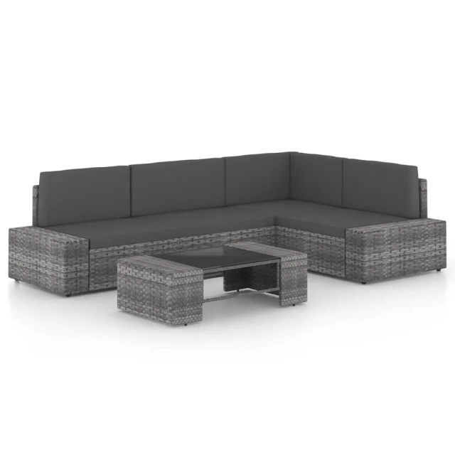 vidaXL Vrtna sedežna garnitura 5-delna z blazinami siv poli ratan