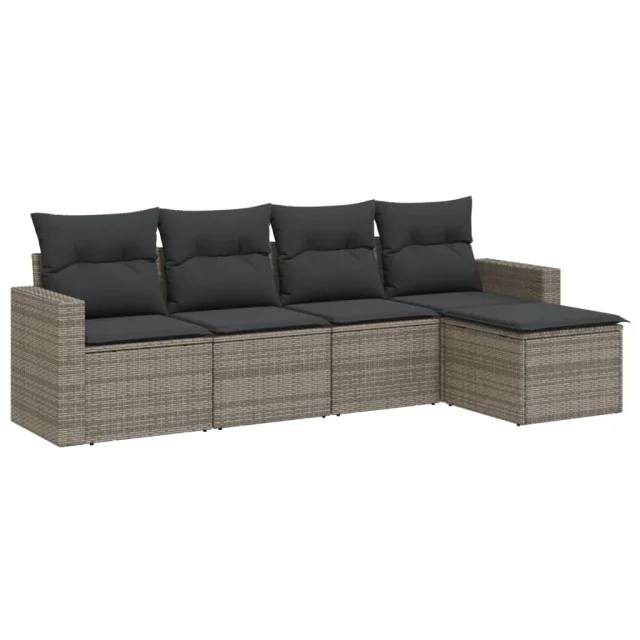 vidaXL Vrtna sedežna garnitura 5-delna z blazinami siv poli ratan