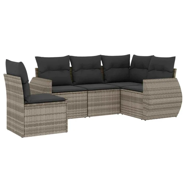 vidaXL Vrtna sedežna garnitura 5-delna z blazinami siv poli ratan