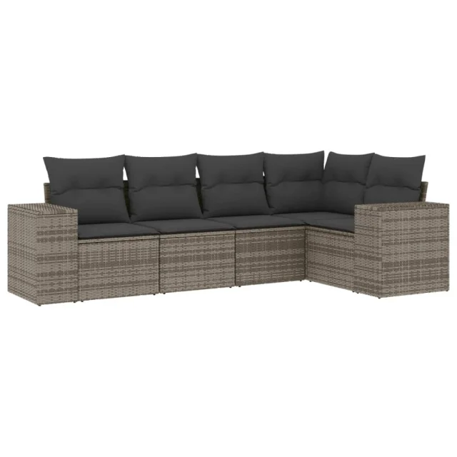 vidaXL Vrtna sedežna garnitura 5-delna z blazinami siv poli ratan
