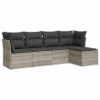 vidaXL Vrtna sedežna garnitura 5-delna z blazinami siv poli ratan