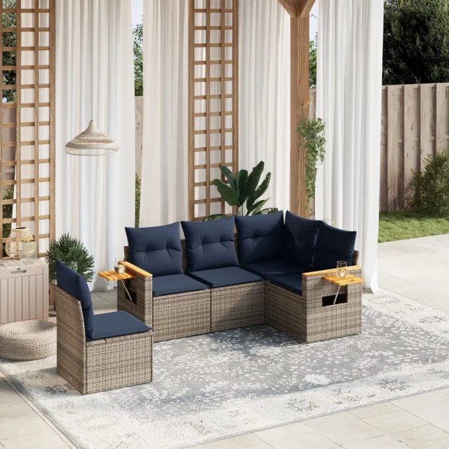 Ta vrtna sedežna garnitura je popoln dodatek za vaše dvorišče, teraso ali verando, saj zagotavlja udoben in vabljiv prostor za klepet z družino in prijatelji ali preprosto za sprostitev in uživanje na prostem.