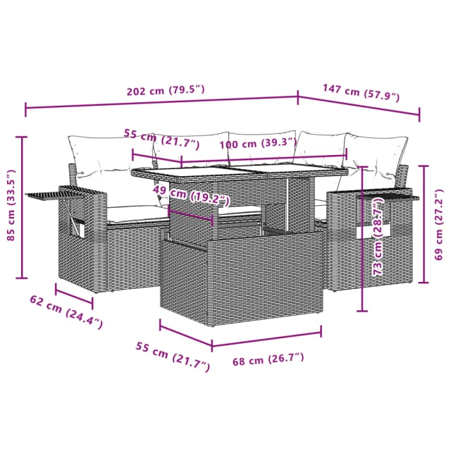 vidaXL Vrtna sedežna garnitura 5-delna z blazinami siv poli ratan
