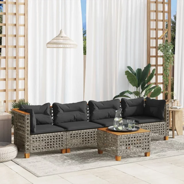 vidaXL Vrtna sedežna garnitura 5-delna z blazinami siv poli ratan