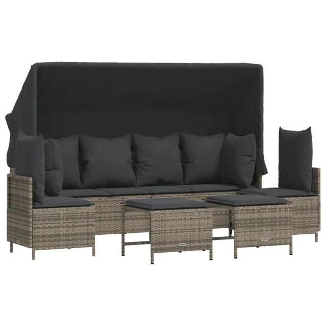 vidaXL Vrtna sedežna garnitura 5-delna z blazinami siv poli ratan