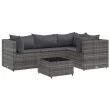 vidaXL Vrtna sedežna garnitura 5-delna z blazinami siv poli ratan
