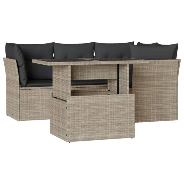 vidaXL Vrtna sedežna garnitura 5-delna z blazinami siv poli ratan