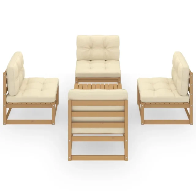 vidaXL Vrtna sedežna garnitura 5-delna z blazinami trdna borovina