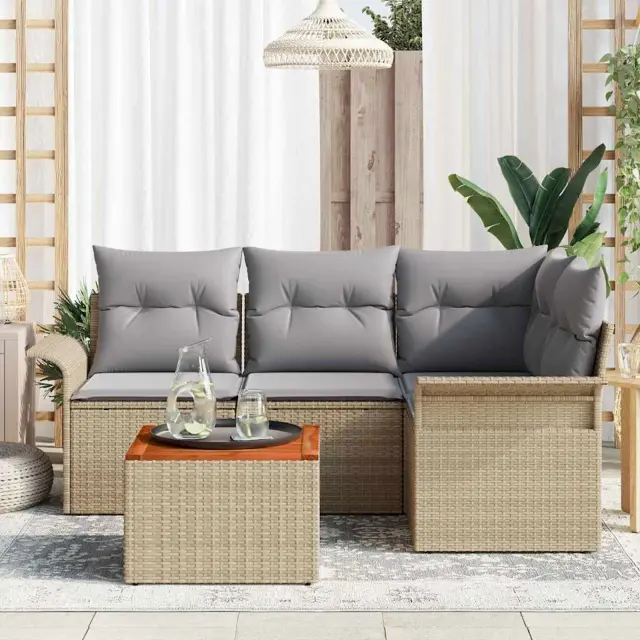 Ta modularni vrtni kavč set ponuja prilagodljivo in stilno rešitev za sedenje na prostem. Idealno je za vrtove in terase, ta eleganten set se ponaša s čistimi linijami in funkcionalnim dizajnom. Odličen je za srečanja, sprostitev ali samostojno ležanje, preprostost povečuje privlačnost zunanjega prostora.