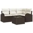 vidaXL Vrtna sedežna garnitura 5 pcs Rjava in bela poli ratan