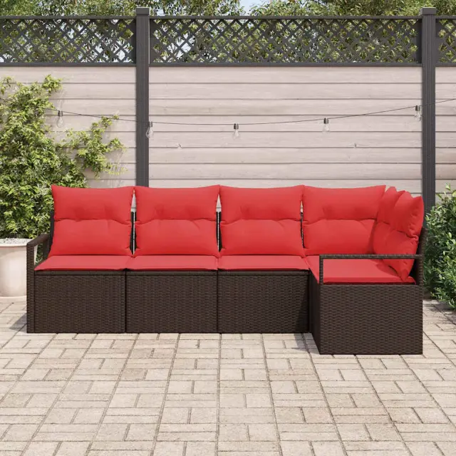 vidaXL Vrtna sedežna garnitura 5 pcs Rjava Poly ratan