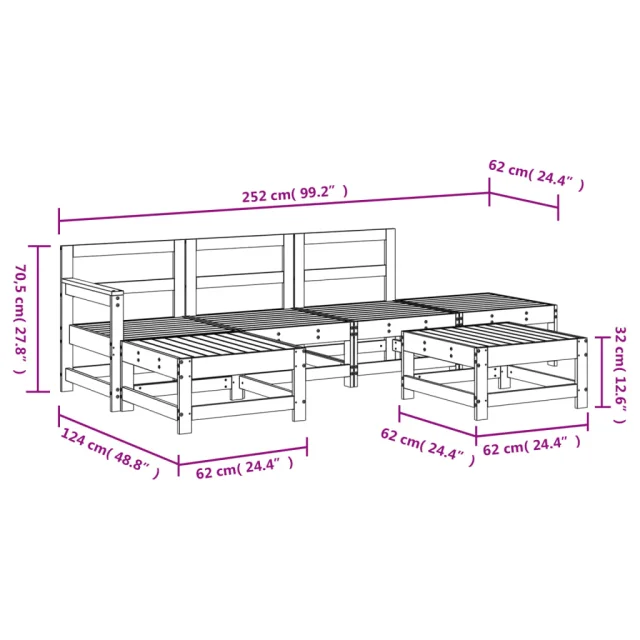vidaXL Vrtna sedežna garnitura 6-delna bela trdna borovina