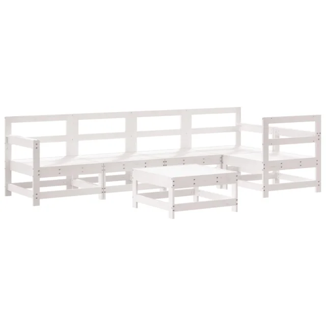 vidaXL Vrtna sedežna garnitura 6-delna bela trdna borovina