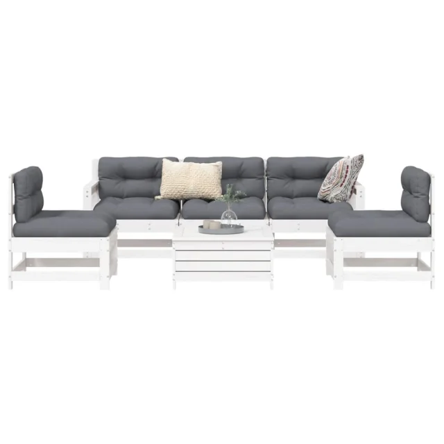 vidaXL Vrtna sedežna garnitura 6-delna bela trdna borovina