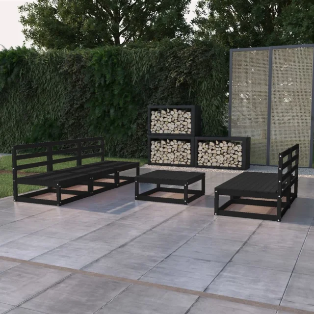 vidaXL Vrtna sedežna garnitura 6-delna črna trdna borovina