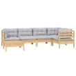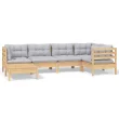 vidaXL Vrtna sedežna garnitura 6-delna s sivimi blazinami borovina