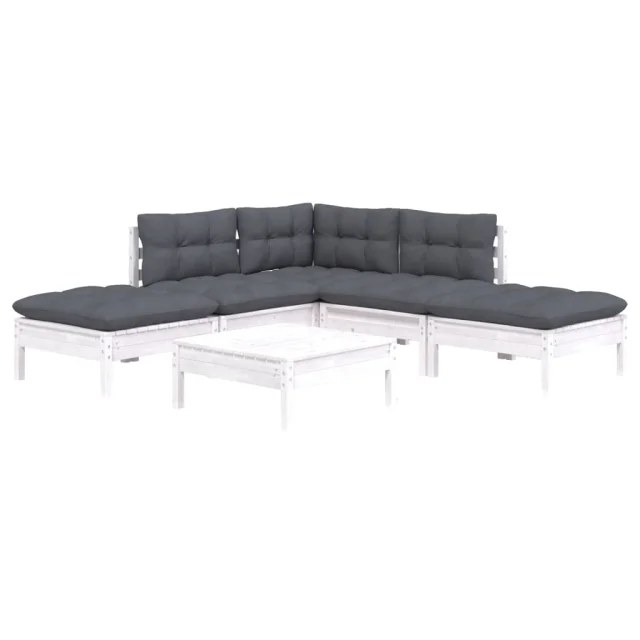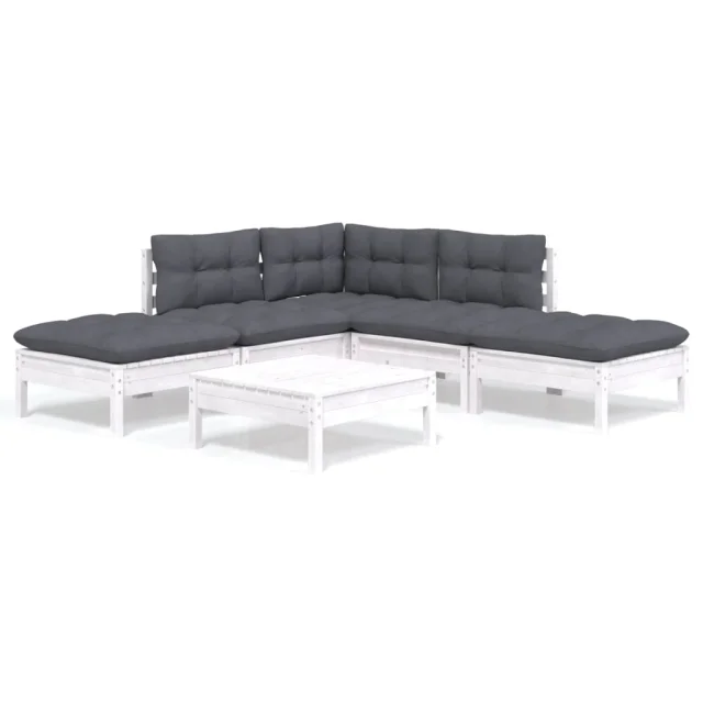 vidaXL Vrtna sedežna garnitura 6-delna z blazinami bela borovina