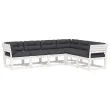 vidaXL Vrtna sedežna garnitura 6-delna z blazinami bela trdna borovina