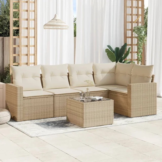 vidaXL Vrtna sedežna garnitura 6-delna z blazinami bež poli ratan