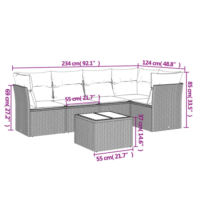 vidaXL Vrtna sedežna garnitura 6-delna z blazinami bež poli ratan