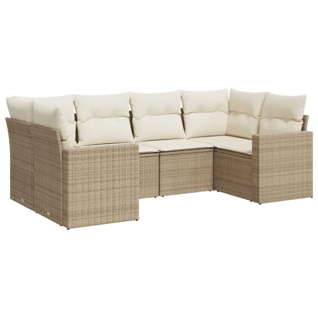 vidaXL Vrtna sedežna garnitura 6-delna z blazinami bež poli ratan