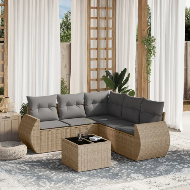 vidaXL Vrtna sedežna garnitura 6-delna z blazinami bež poli ratan