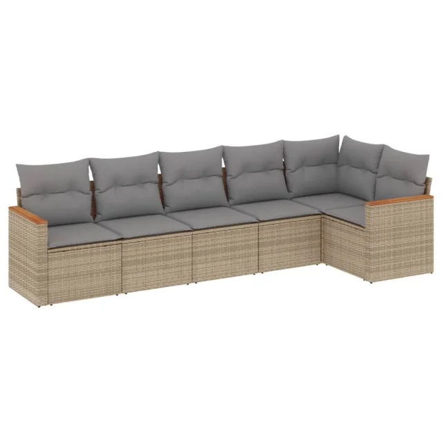 vidaXL Vrtna sedežna garnitura 6-delna z blazinami bež poli ratan