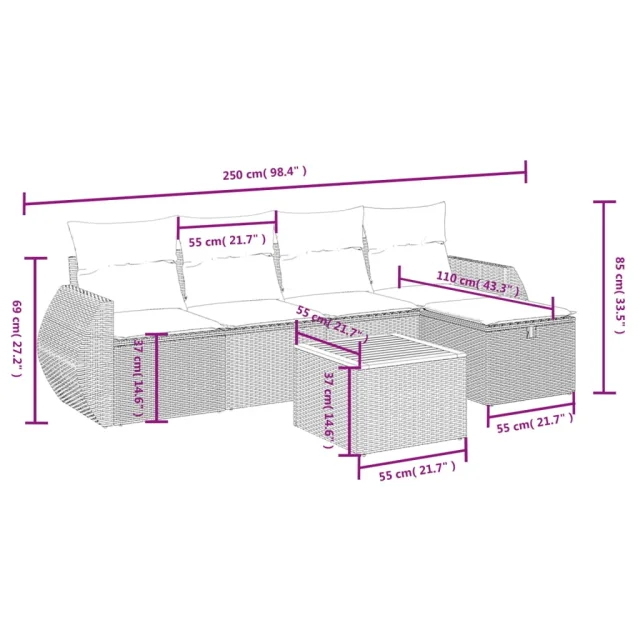 Ta vrtna sedežna garnitura je popoln dodatek za vaše dvorišče, teraso ali verando, saj zagotavlja udoben in vabljiv prostor za klepet z družino in prijatelji ali preprosto za sprostitev in uživanje na prostem.