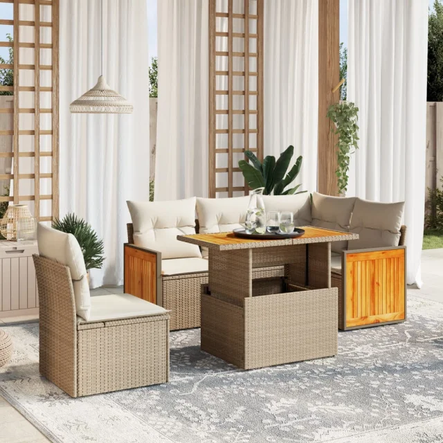vidaXL Vrtna sedežna garnitura 6-delna z blazinami bež poli ratan