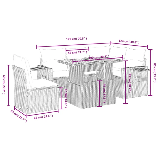 vidaXL Vrtna sedežna garnitura 6-delna z blazinami bež poli ratan