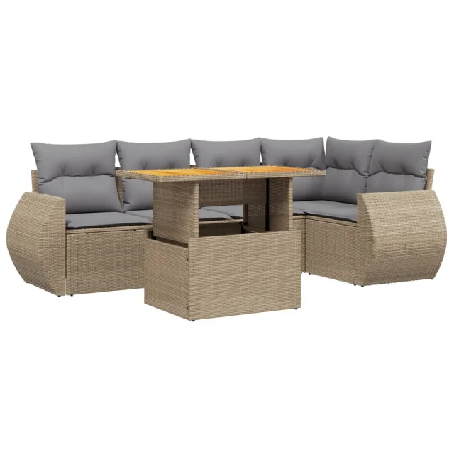 vidaXL Vrtna sedežna garnitura 6-delna z blazinami bež poli ratan