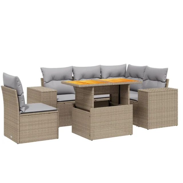 vidaXL Vrtna sedežna garnitura 6-delna z blazinami bež poli ratan