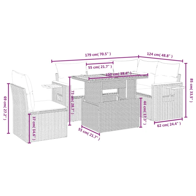 vidaXL Vrtna sedežna garnitura 6-delna z blazinami bež poli ratan