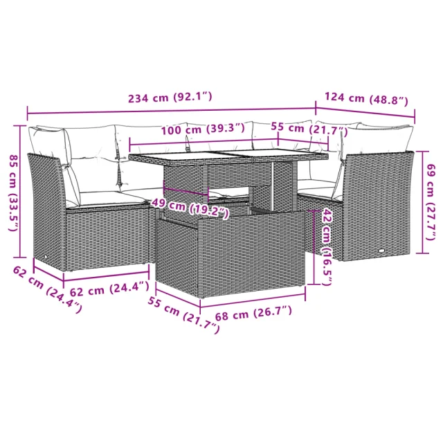 vidaXL Vrtna sedežna garnitura 6-delna z blazinami bež poli ratan
