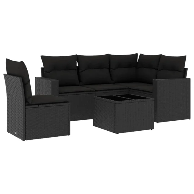 vidaXL Vrtna sedežna garnitura 6-delna z blazinami črna poli ratan