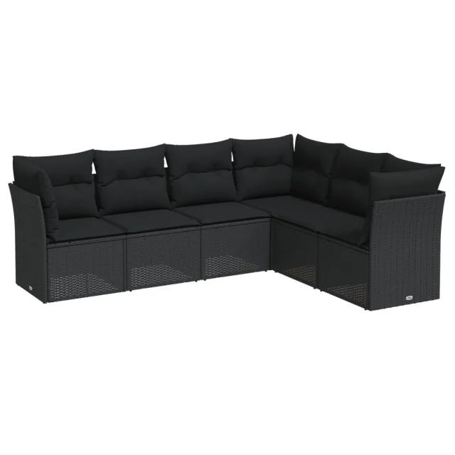 vidaXL Vrtna sedežna garnitura 6-delna z blazinami črna poli ratan