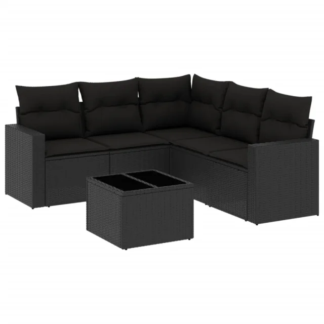vidaXL Vrtna sedežna garnitura 6-delna z blazinami črna poli ratan