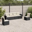 vidaXL Vrtna sedežna garnitura 6-delna z blazinami črna poli ratan