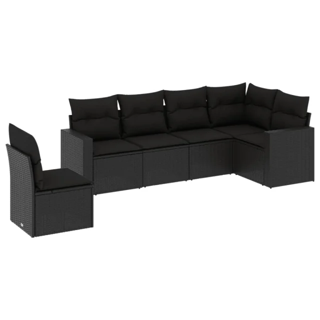 vidaXL Vrtna sedežna garnitura 6-delna z blazinami črna poli ratan