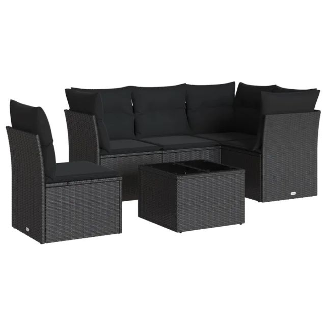 vidaXL Vrtna sedežna garnitura 6-delna z blazinami črna poli ratan