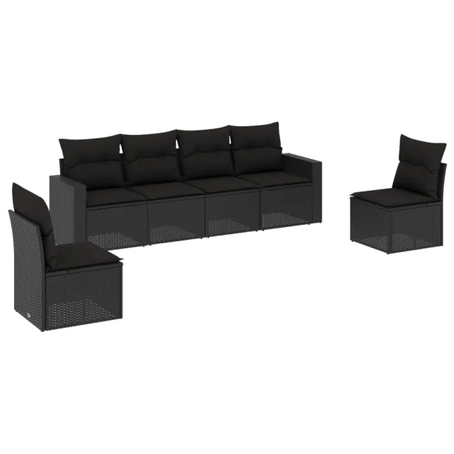 vidaXL Vrtna sedežna garnitura 6-delna z blazinami črna poli ratan