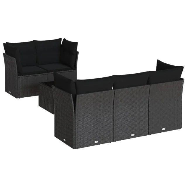 vidaXL Vrtna sedežna garnitura 6-delna z blazinami črna poli ratan