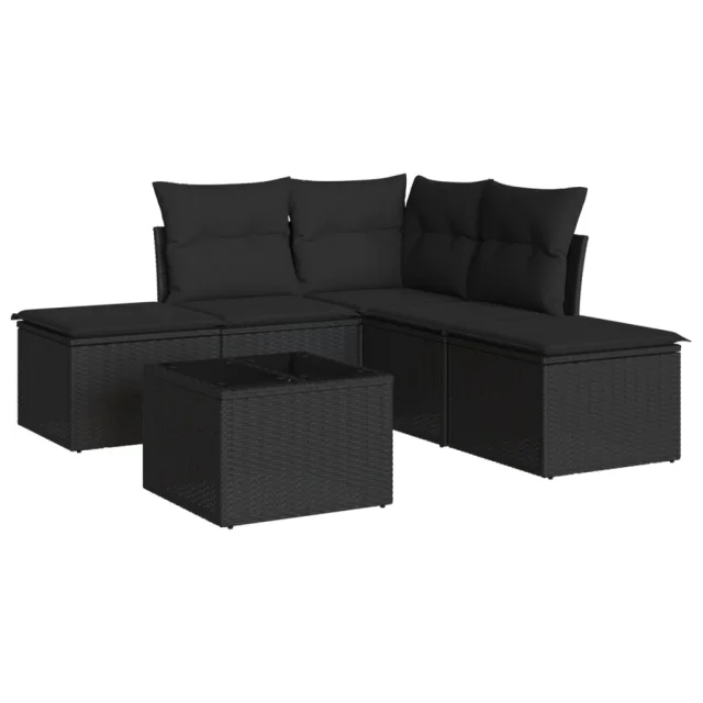 vidaXL Vrtna sedežna garnitura 6-delna z blazinami črna poli ratan