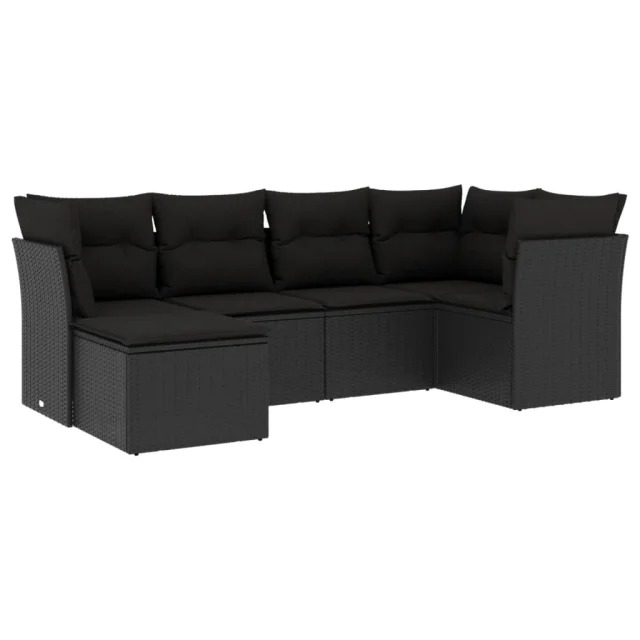 vidaXL Vrtna sedežna garnitura 6-delna z blazinami črna poli ratan