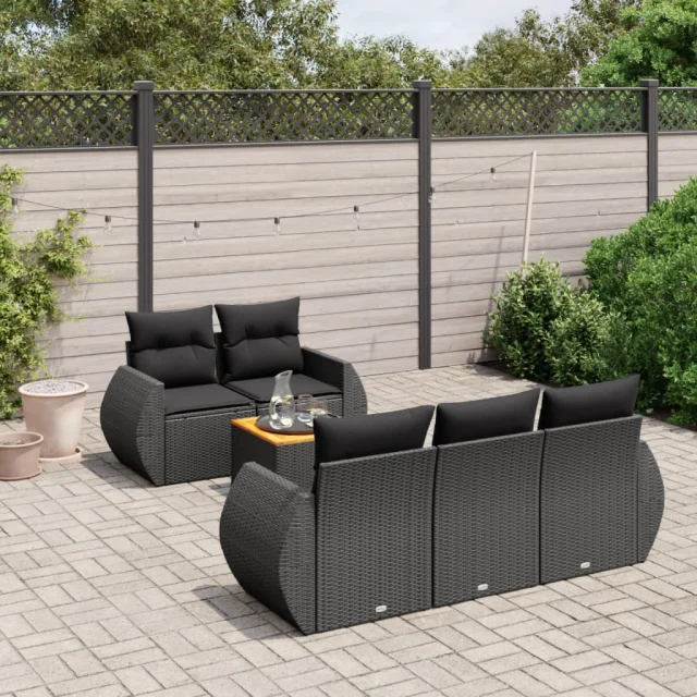 vidaXL Vrtna sedežna garnitura 6-delna z blazinami črna poli ratan
