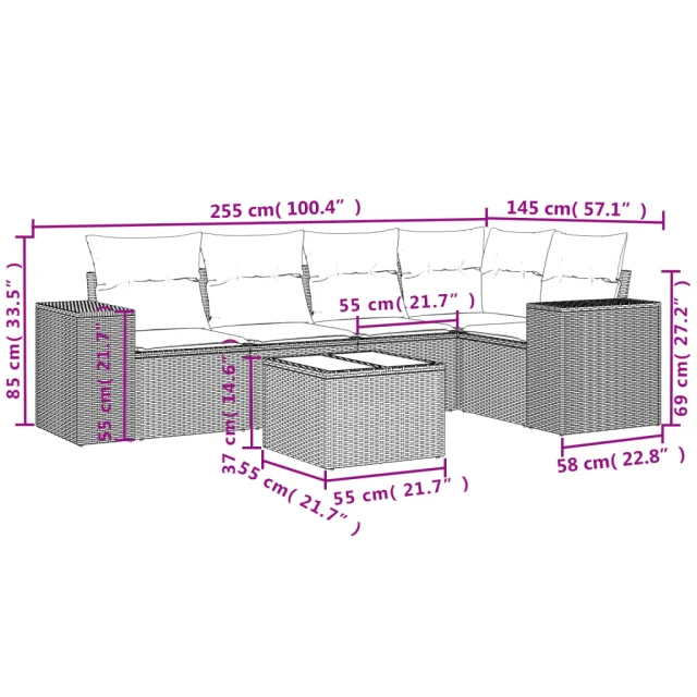 vidaXL Vrtna sedežna garnitura 6-delna z blazinami črna poli ratan
