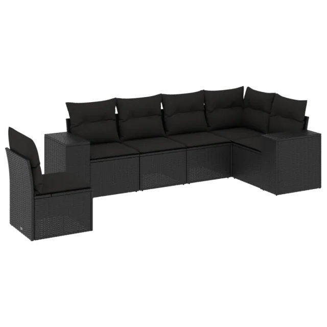 vidaXL Vrtna sedežna garnitura 6-delna z blazinami črna poli ratan