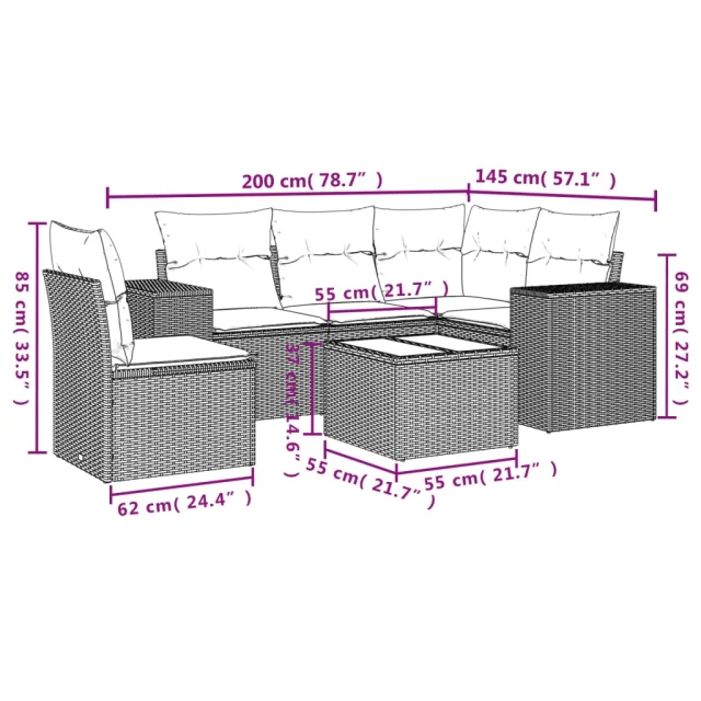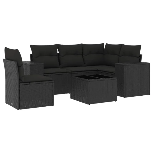 vidaXL Vrtna sedežna garnitura 6-delna z blazinami črna poli ratan